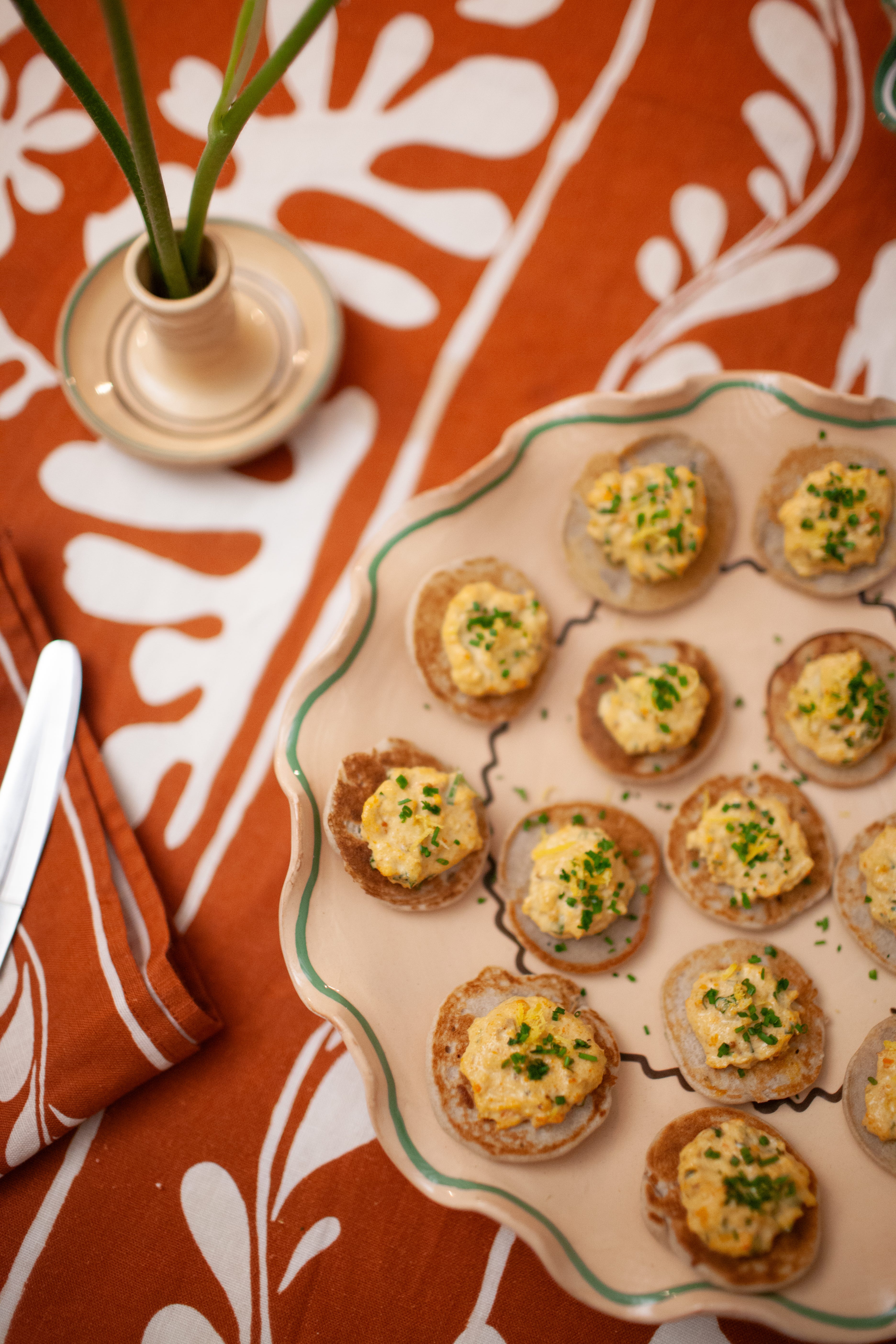 As we get ready to step into 2025, I wanted to share a recipe that’s perfect for celebrating: Crab Buckwheat Blinis with Homemade Tarragon Mayo photographed on my Kult x Casa ceramics large sharing ripple platter