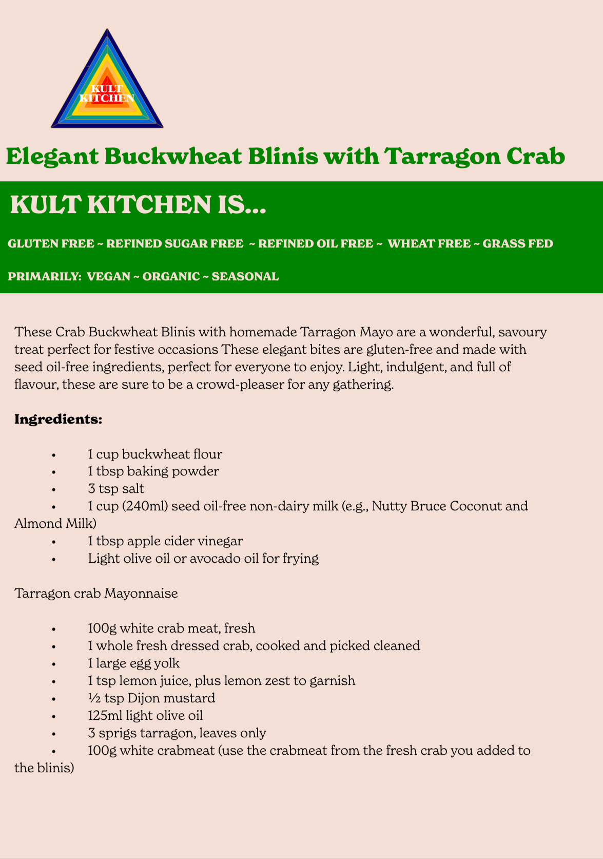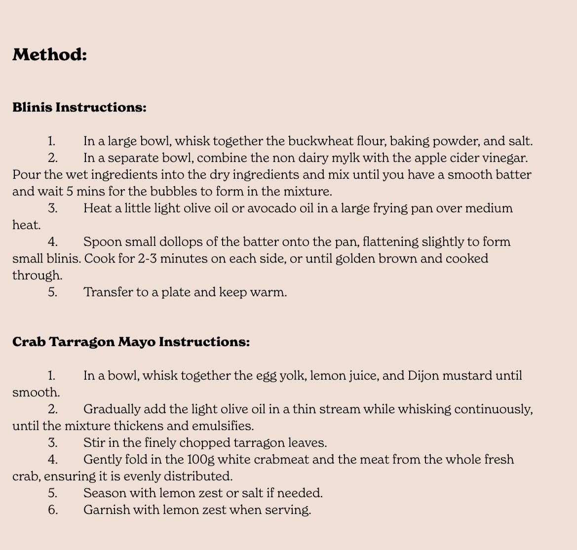 Now the recipe for the Crab Blinis, let me know what you think!